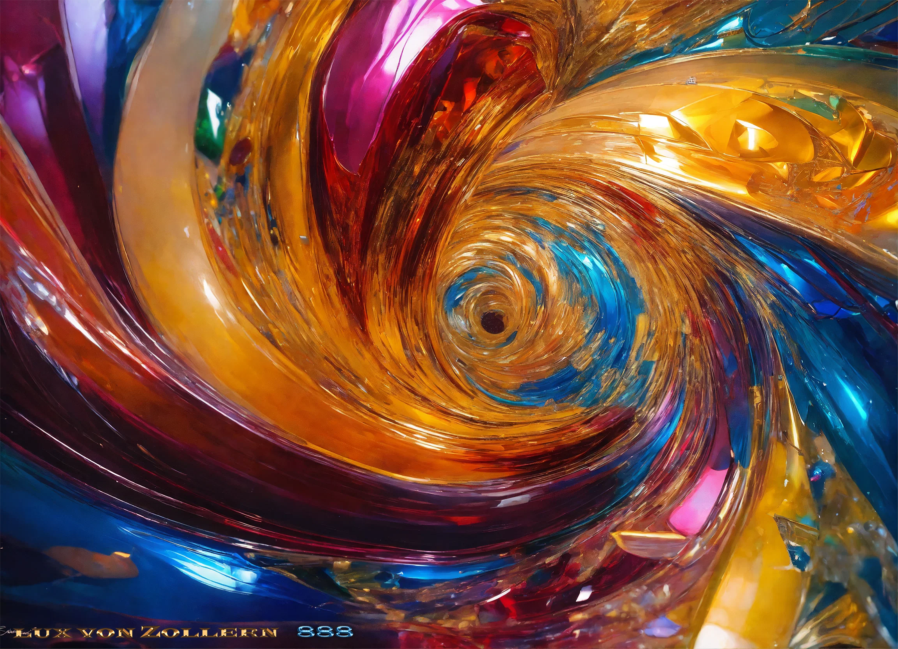 Lux von Zollern’s work is known for its hypnotic interplay of light and dark hues, masterfully executed to create a sense of rhythm and movement across each composition. But in this collection, that rhythm carries meaning. The bright, gleaming tones — layered with intricate detail and brilliant clarity — are not simply aesthetic choices. They are coded with purpose. These luminous passages speak of optimism, drive, and the rising energy of new beginnings. The darker moments, rich and complex, evoke the quiet strength required to weather life’s setbacks with grace and resolve. Together, the contrasts serve as a mirror for every successful individual’s path: not linear, but layered. Not simple, but sure.