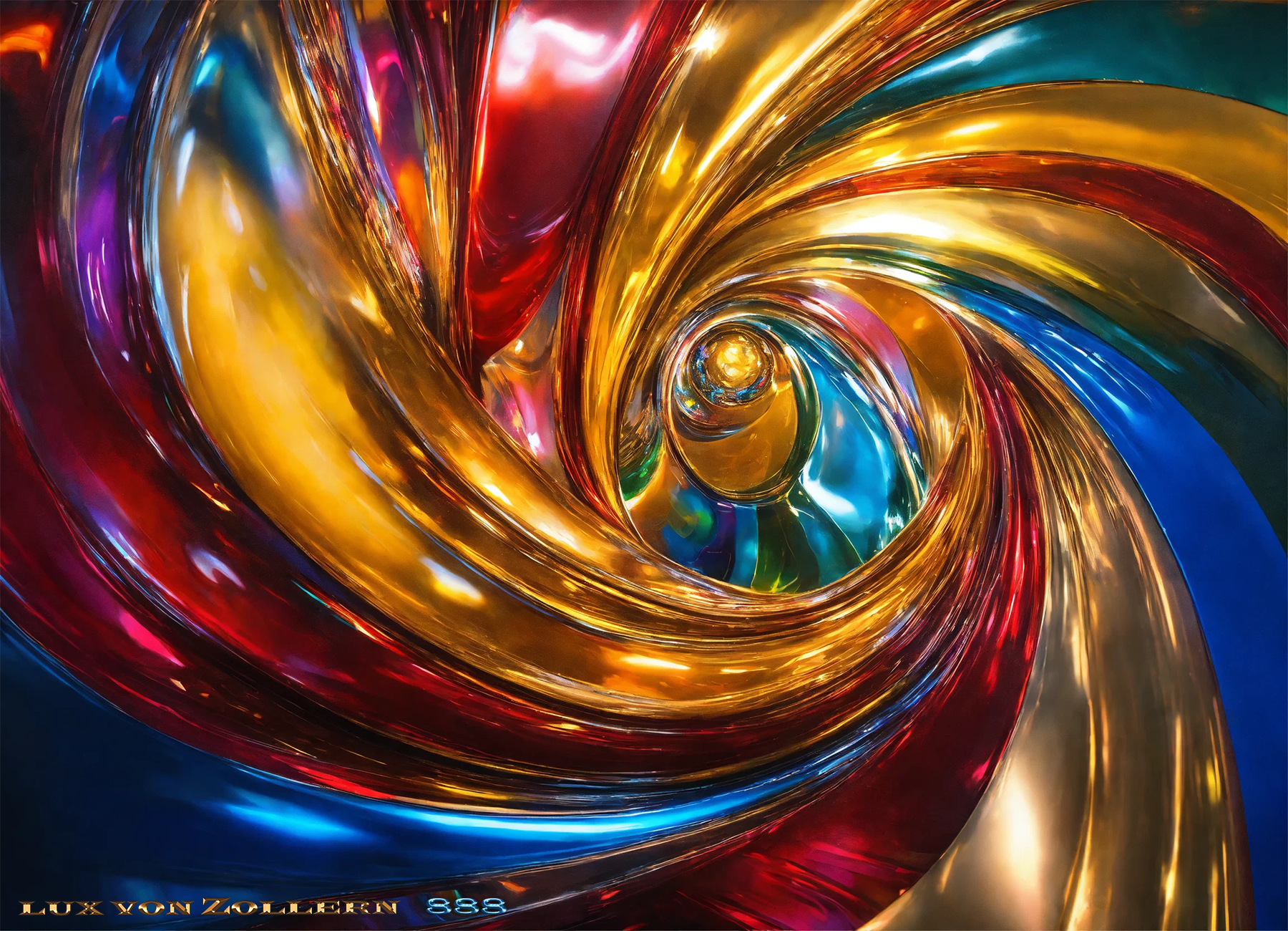 Lux von Zollern’s work is known for its hypnotic interplay of light and dark hues, masterfully executed to create a sense of rhythm and movement across each composition. But in this collection, that rhythm carries meaning. The bright, gleaming tones — layered with intricate detail and brilliant clarity — are not simply aesthetic choices. They are coded with purpose. These luminous passages speak of optimism, drive, and the rising energy of new beginnings. The darker moments, rich and complex, evoke the quiet strength required to weather life’s setbacks with grace and resolve. Together, the contrasts serve as a mirror for every successful individual’s path: not linear, but layered. Not simple, but sure.