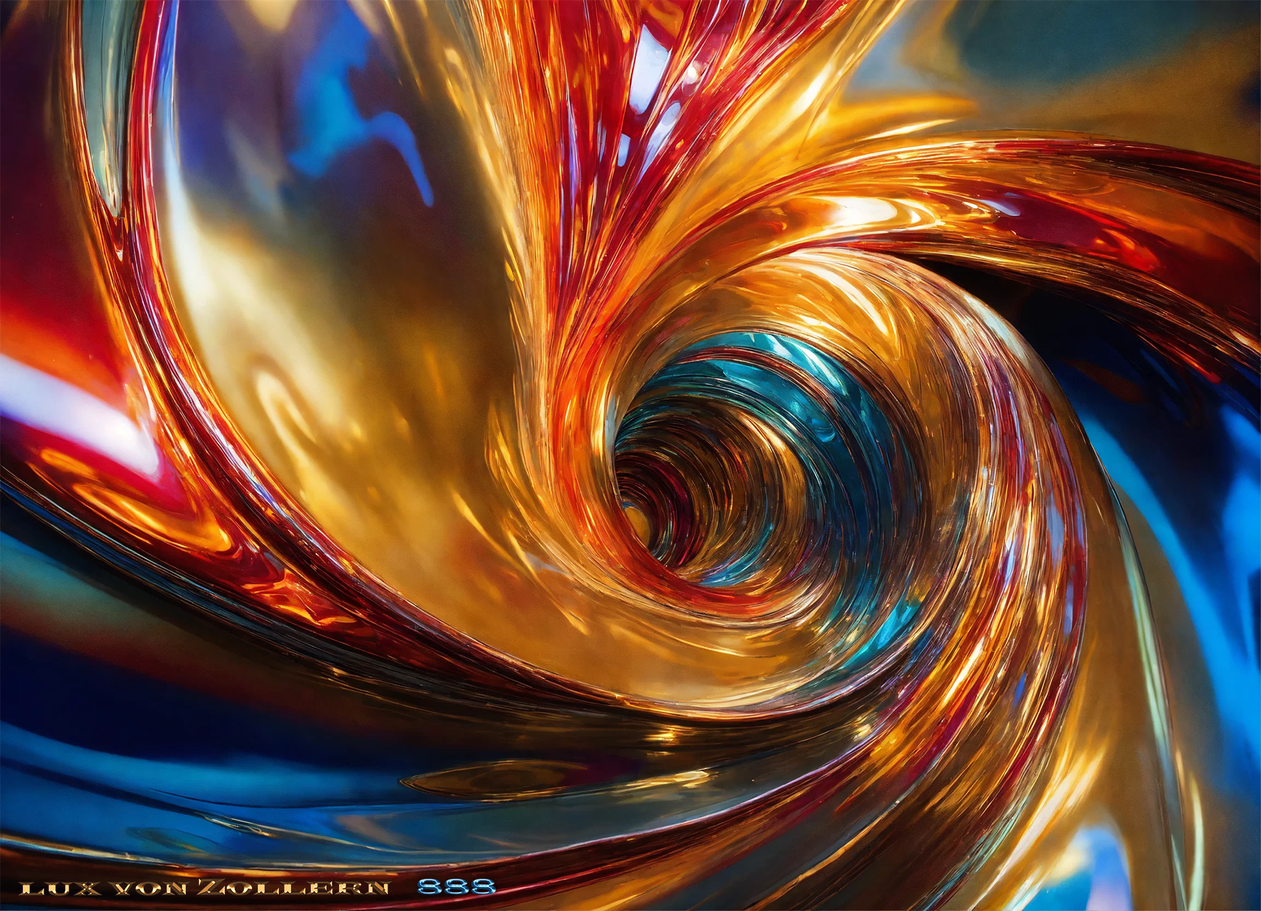 Lux von Zollern’s work is known for its hypnotic interplay of light and dark hues, masterfully executed to create a sense of rhythm and movement across each composition. But in this collection, that rhythm carries meaning. The bright, gleaming tones — layered with intricate detail and brilliant clarity — are not simply aesthetic choices. They are coded with purpose. These luminous passages speak of optimism, drive, and the rising energy of new beginnings. The darker moments, rich and complex, evoke the quiet strength required to weather life’s setbacks with grace and resolve. Together, the contrasts serve as a mirror for every successful individual’s path: not linear, but layered. Not simple, but sure.