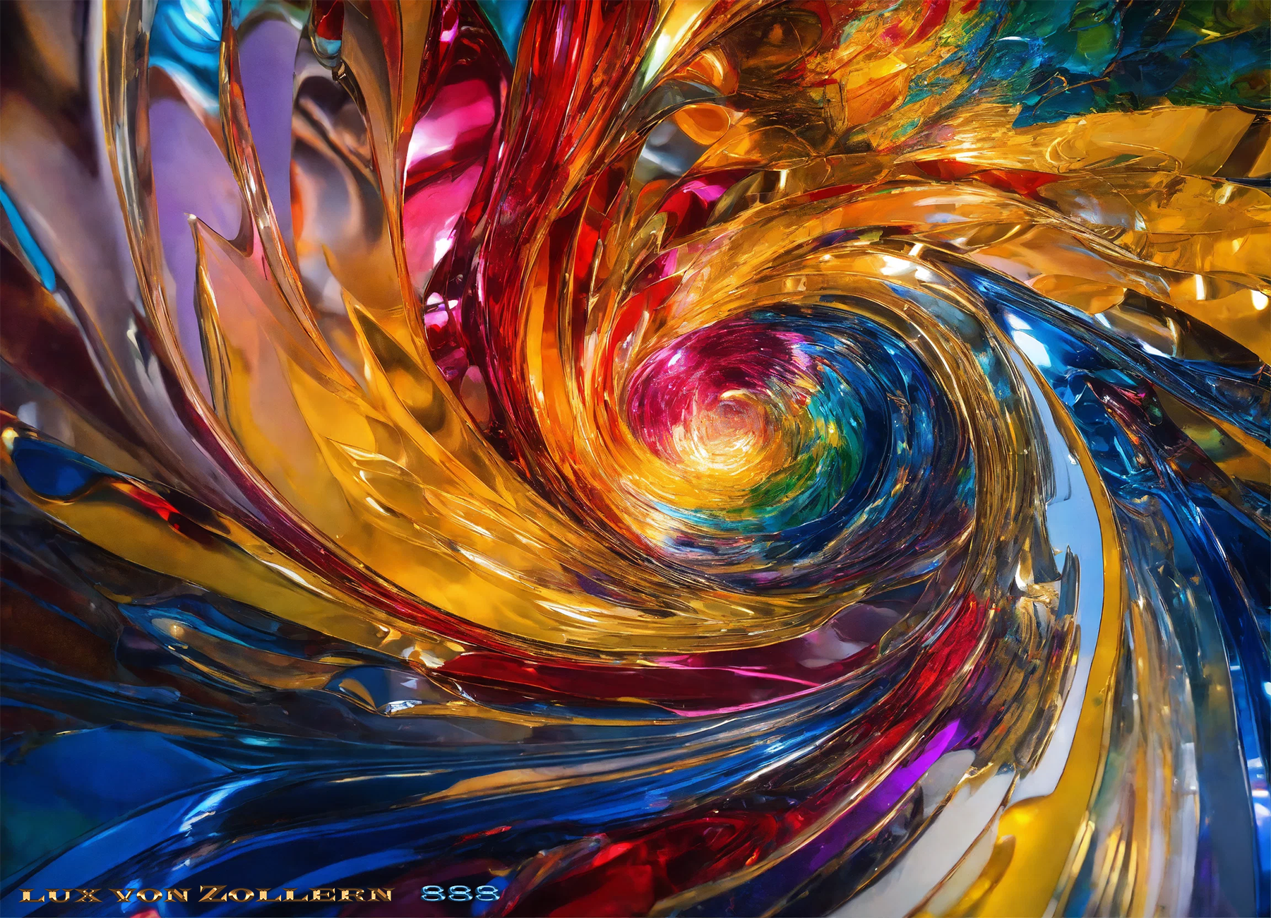 Lux von Zollern’s work is known for its hypnotic interplay of light and dark hues, masterfully executed to create a sense of rhythm and movement across each composition. But in this collection, that rhythm carries meaning. The bright, gleaming tones — layered with intricate detail and brilliant clarity — are not simply aesthetic choices. They are coded with purpose. These luminous passages speak of optimism, drive, and the rising energy of new beginnings. The darker moments, rich and complex, evoke the quiet strength required to weather life’s setbacks with grace and resolve. Together, the contrasts serve as a mirror for every successful individual’s path: not linear, but layered. Not simple, but sure.