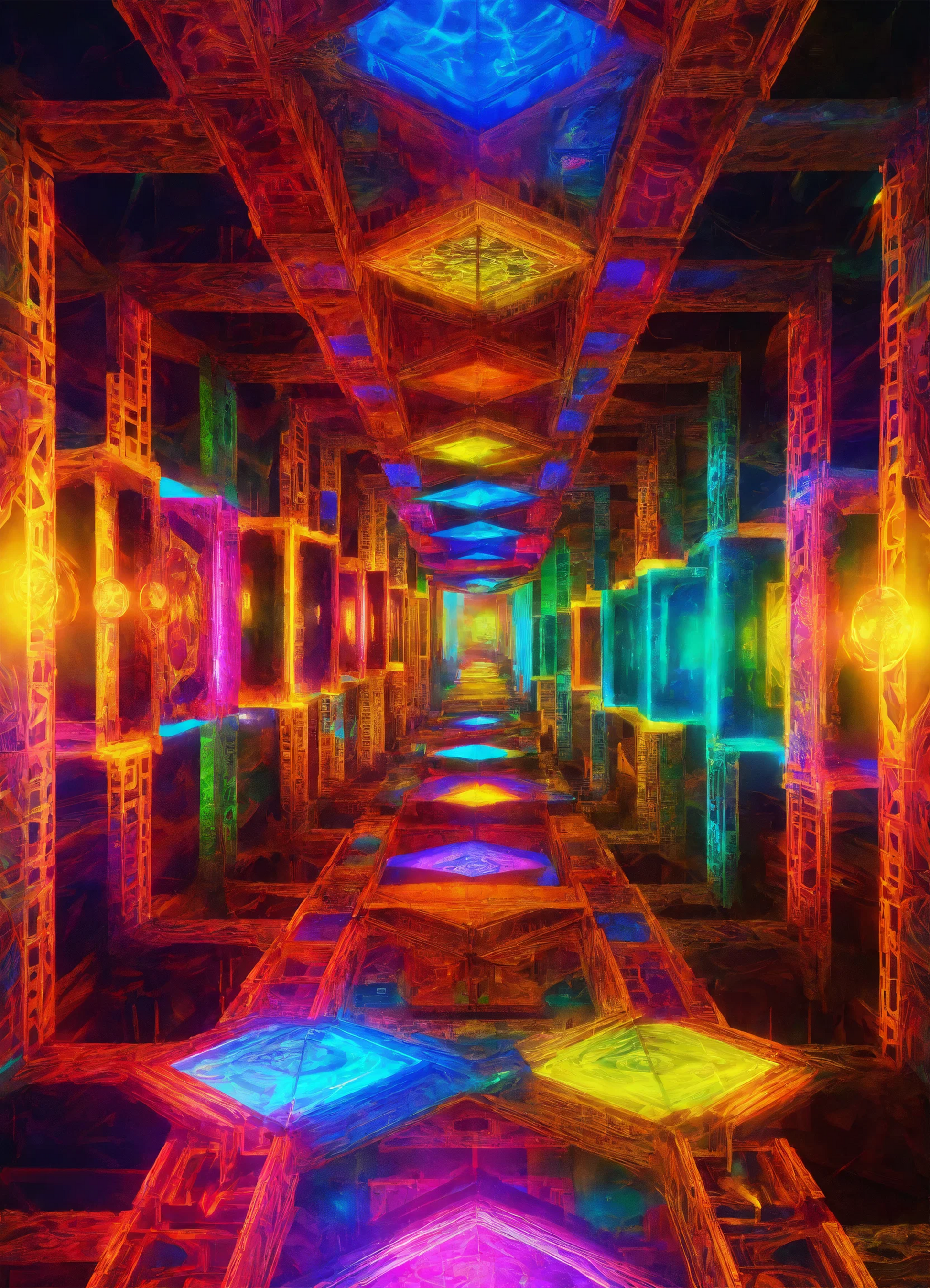 For those who dare to dream, the hallway represents not just the destination, but the process—the endless series of decisions, sacrifices, and lessons learned along the way. The colorful distractions, though inviting, are often distractions of the mind, things that require one to remain steadfast and not deviate from the carefully laid-out plan. Each step down this hallway brings with it both opportunity and risk, and as the viewer takes in the artwork, they are encouraged to reflect on their own journey, questioning the challenges they’ve faced and the moments that tested their resolve.