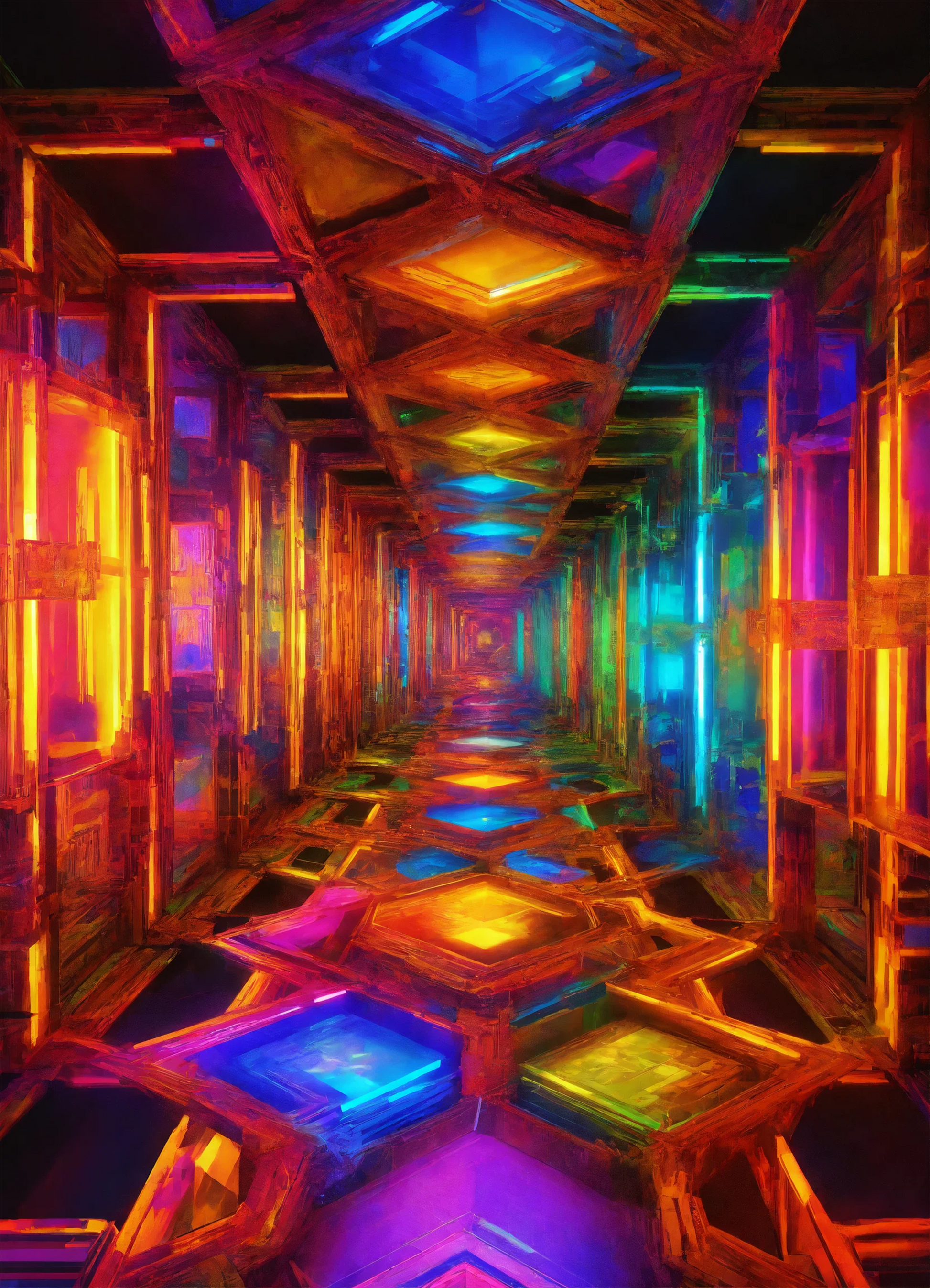For those who dare to dream, the hallway represents not just the destination, but the process—the endless series of decisions, sacrifices, and lessons learned along the way. The colorful distractions, though inviting, are often distractions of the mind, things that require one to remain steadfast and not deviate from the carefully laid-out plan. Each step down this hallway brings with it both opportunity and risk, and as the viewer takes in the artwork, they are encouraged to reflect on their own journey, questioning the challenges they’ve faced and the moments that tested their resolve.