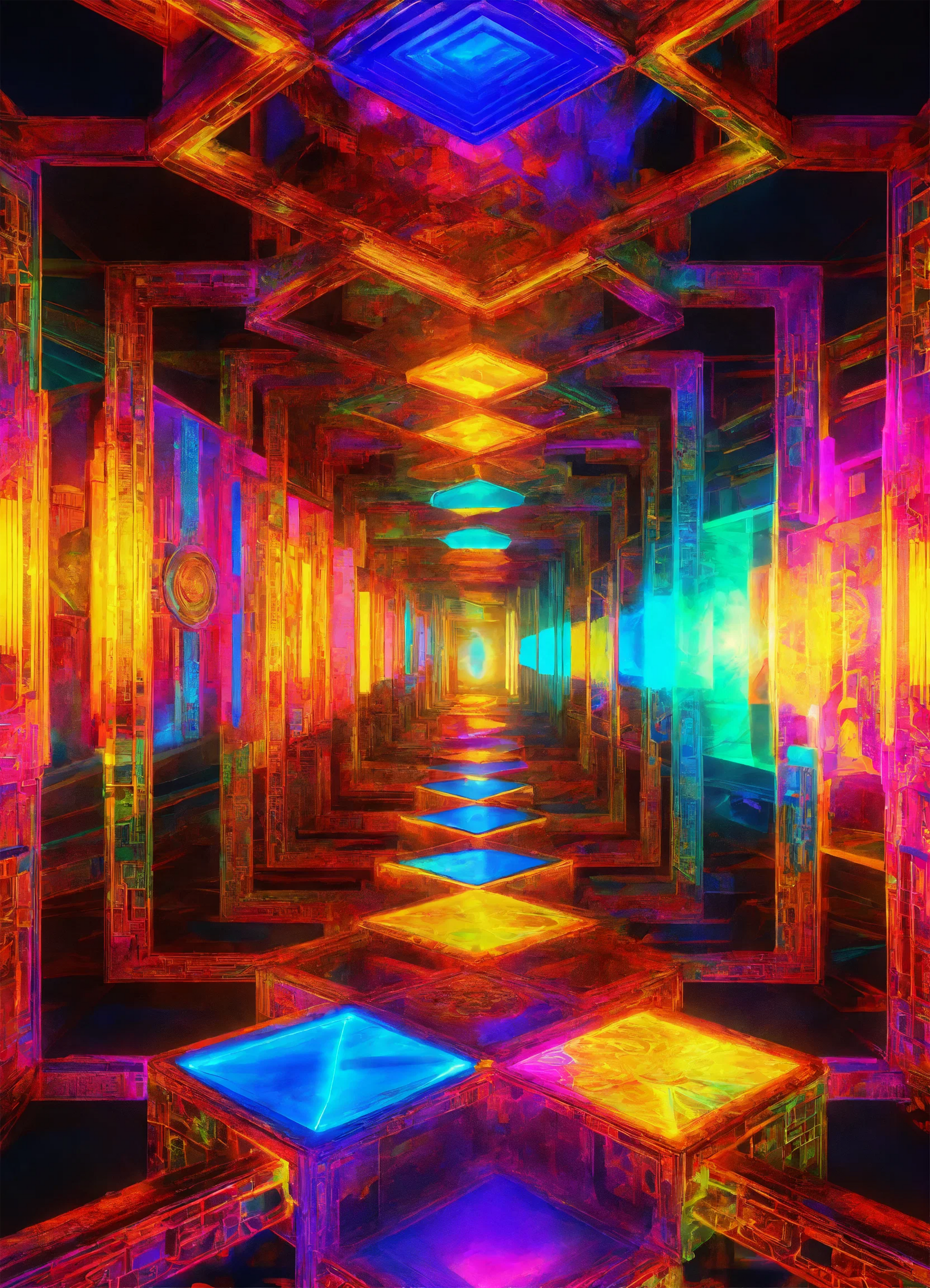 For those who dare to dream, the hallway represents not just the destination, but the process—the endless series of decisions, sacrifices, and lessons learned along the way. The colorful distractions, though inviting, are often distractions of the mind, things that require one to remain steadfast and not deviate from the carefully laid-out plan. Each step down this hallway brings with it both opportunity and risk, and as the viewer takes in the artwork, they are encouraged to reflect on their own journey, questioning the challenges they’ve faced and the moments that tested their resolve.