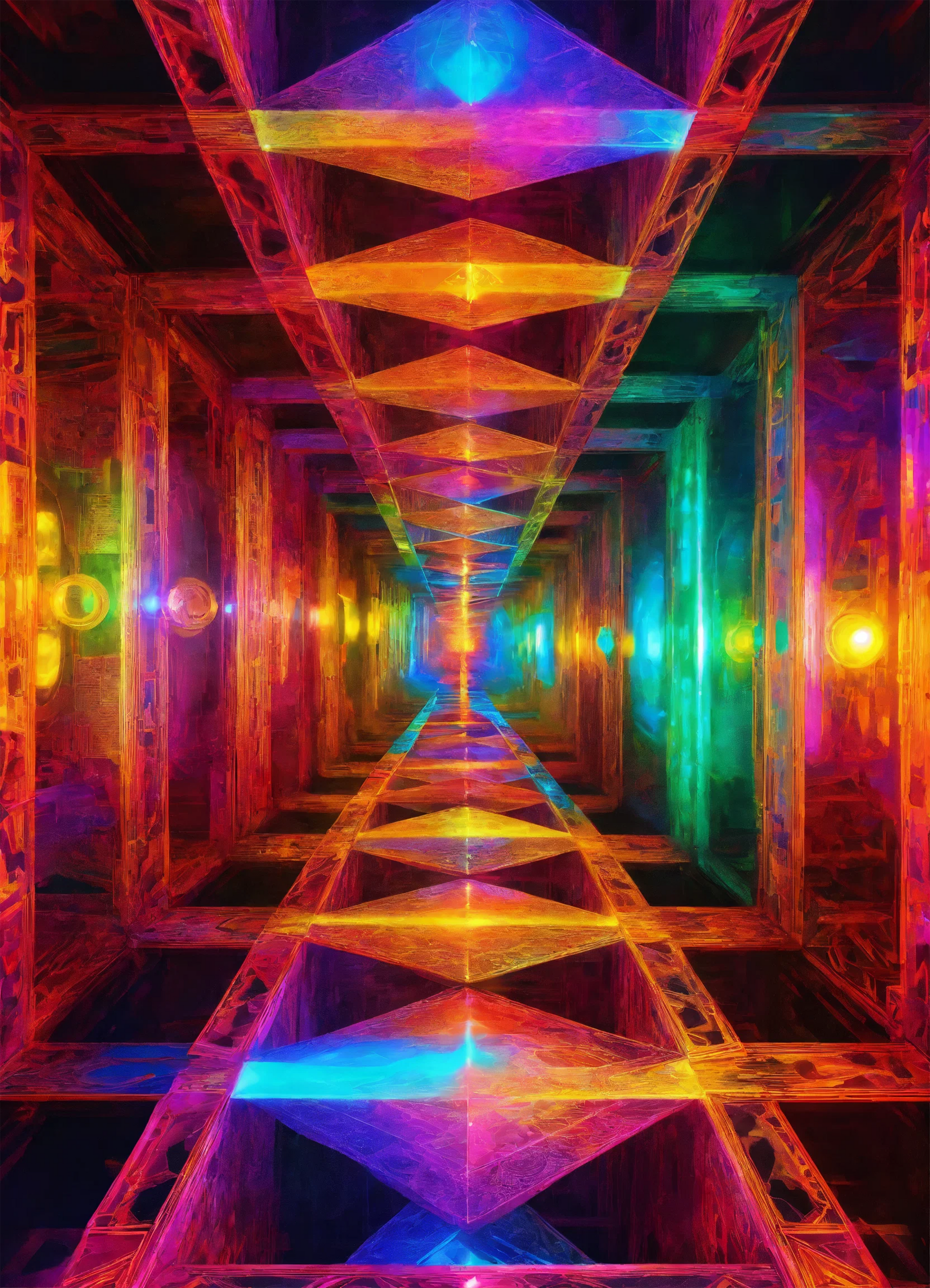For those who dare to dream, the hallway represents not just the destination, but the process—the endless series of decisions, sacrifices, and lessons learned along the way. The colorful distractions, though inviting, are often distractions of the mind, things that require one to remain steadfast and not deviate from the carefully laid-out plan. Each step down this hallway brings with it both opportunity and risk, and as the viewer takes in the artwork, they are encouraged to reflect on their own journey, questioning the challenges they’ve faced and the moments that tested their resolve.