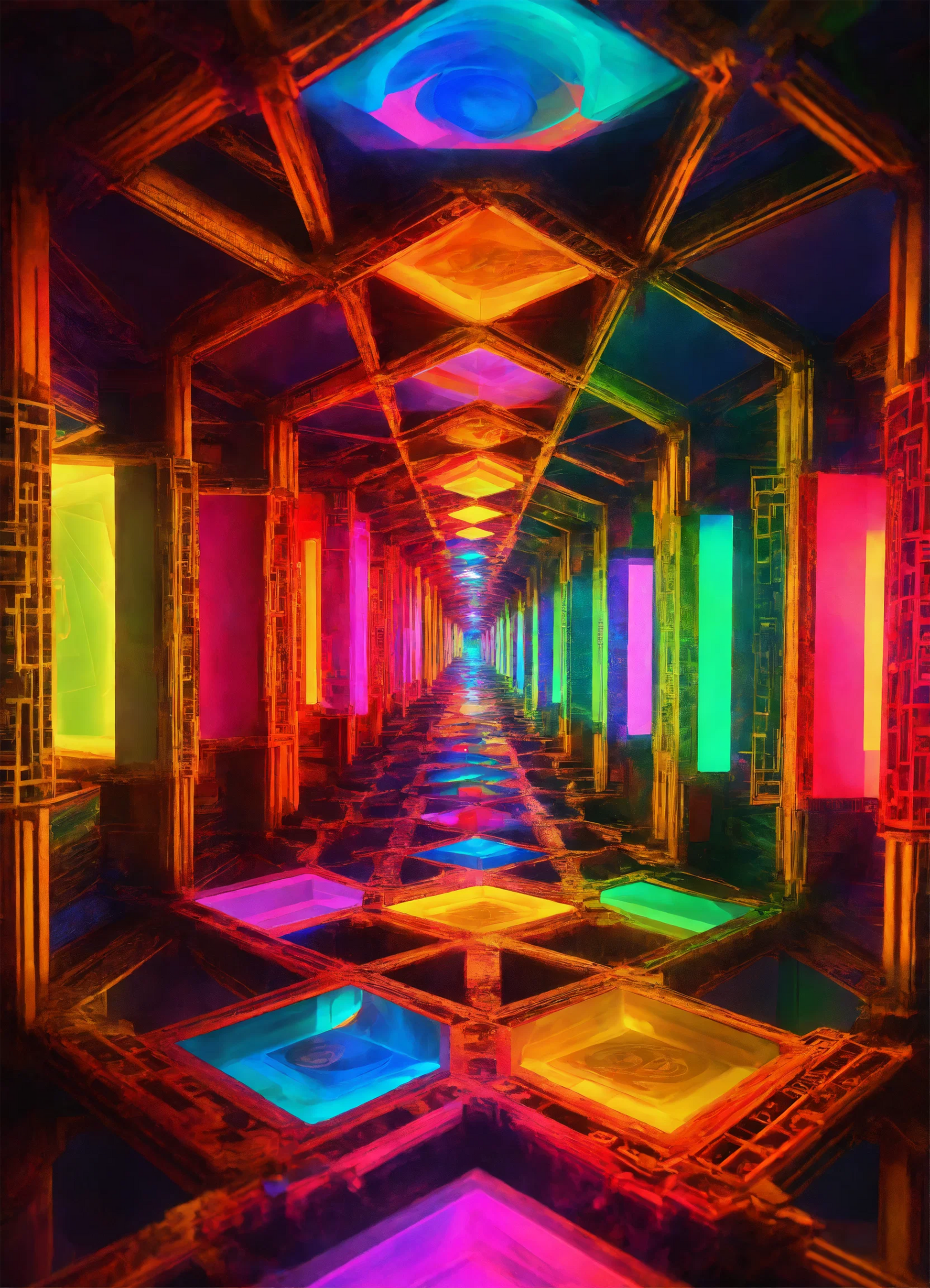 For those who dare to dream, the hallway represents not just the destination, but the process—the endless series of decisions, sacrifices, and lessons learned along the way. The colorful distractions, though inviting, are often distractions of the mind, things that require one to remain steadfast and not deviate from the carefully laid-out plan. Each step down this hallway brings with it both opportunity and risk, and as the viewer takes in the artwork, they are encouraged to reflect on their own journey, questioning the challenges they’ve faced and the moments that tested their resolve.