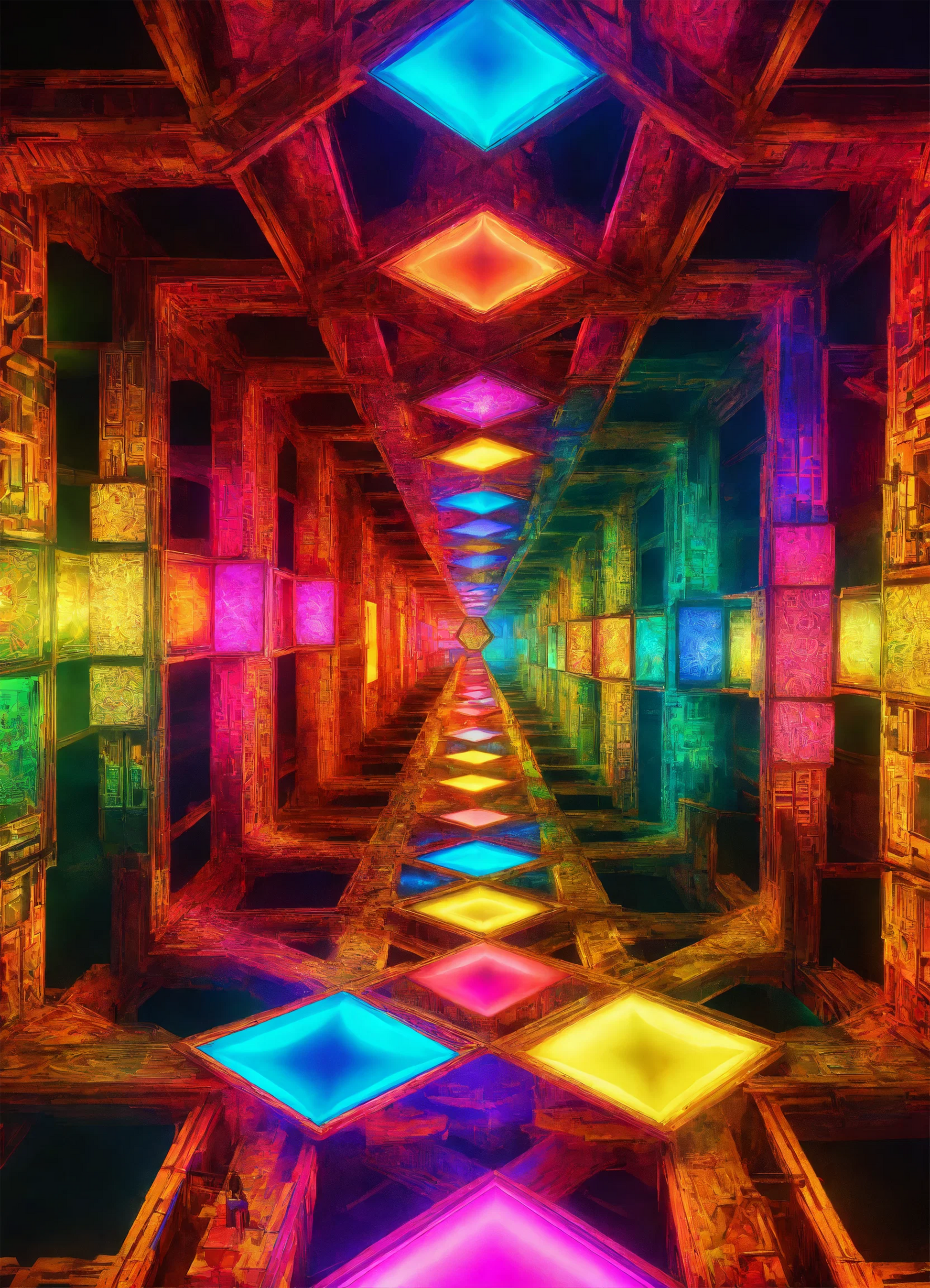 For those who dare to dream, the hallway represents not just the destination, but the process—the endless series of decisions, sacrifices, and lessons learned along the way. The colorful distractions, though inviting, are often distractions of the mind, things that require one to remain steadfast and not deviate from the carefully laid-out plan. Each step down this hallway brings with it both opportunity and risk, and as the viewer takes in the artwork, they are encouraged to reflect on their own journey, questioning the challenges they’ve faced and the moments that tested their resolve.