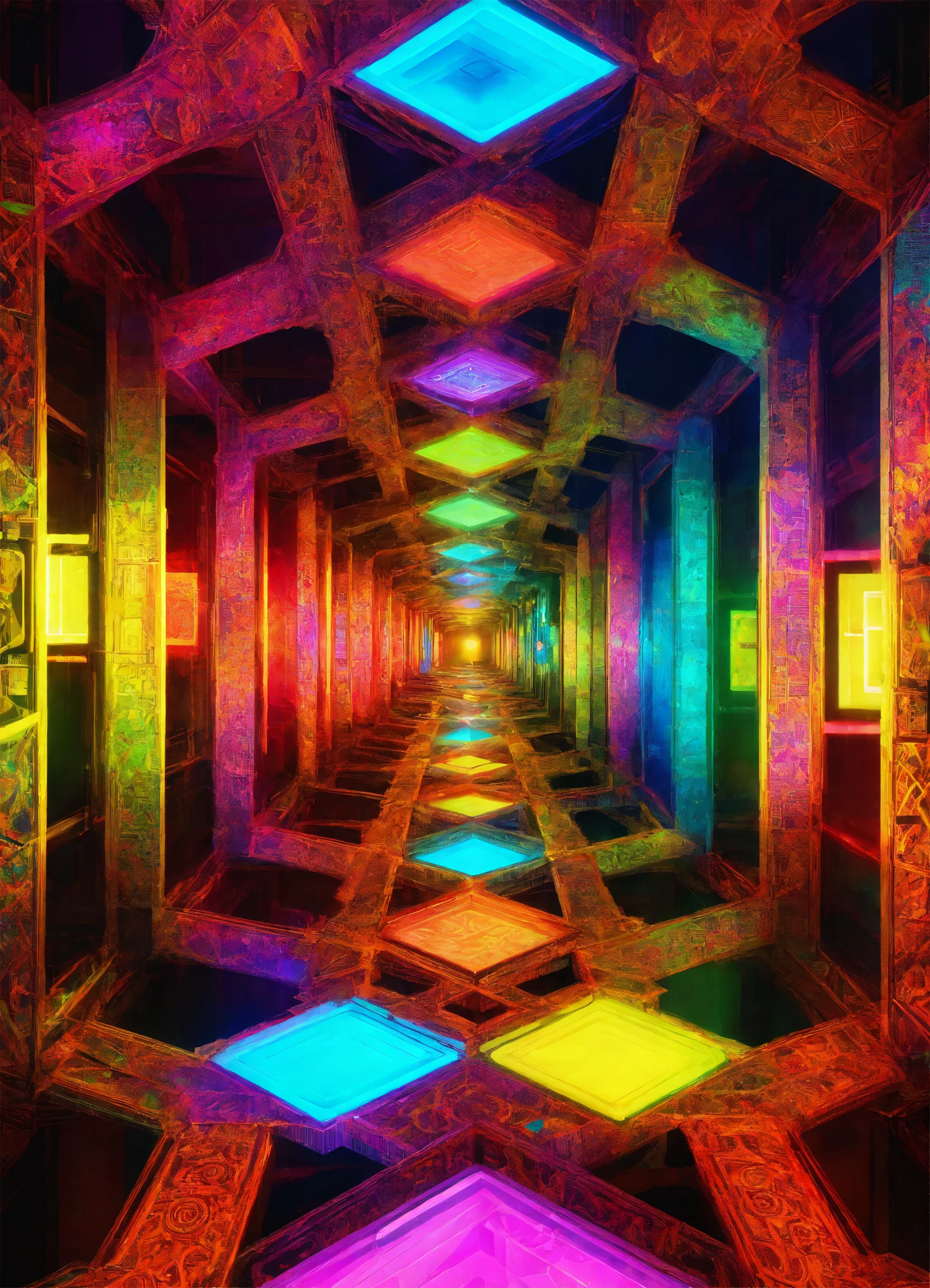 For those who dare to dream, the hallway represents not just the destination, but the process—the endless series of decisions, sacrifices, and lessons learned along the way. The colorful distractions, though inviting, are often distractions of the mind, things that require one to remain steadfast and not deviate from the carefully laid-out plan. Each step down this hallway brings with it both opportunity and risk, and as the viewer takes in the artwork, they are encouraged to reflect on their own journey, questioning the challenges they’ve faced and the moments that tested their resolve.