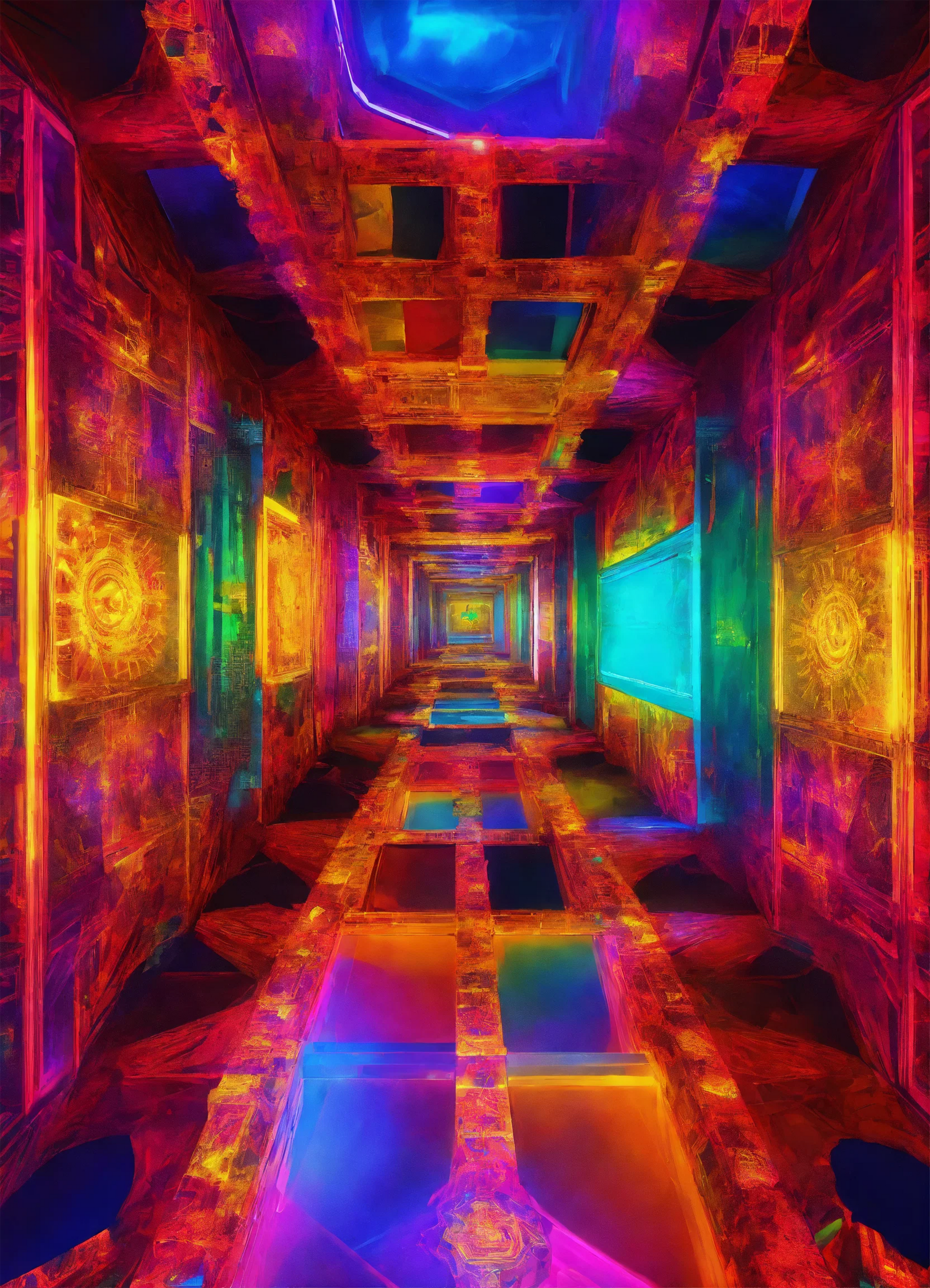 For those who dare to dream, the hallway represents not just the destination, but the process—the endless series of decisions, sacrifices, and lessons learned along the way. The colorful distractions, though inviting, are often distractions of the mind, things that require one to remain steadfast and not deviate from the carefully laid-out plan. Each step down this hallway brings with it both opportunity and risk, and as the viewer takes in the artwork, they are encouraged to reflect on their own journey, questioning the challenges they’ve faced and the moments that tested their resolve.