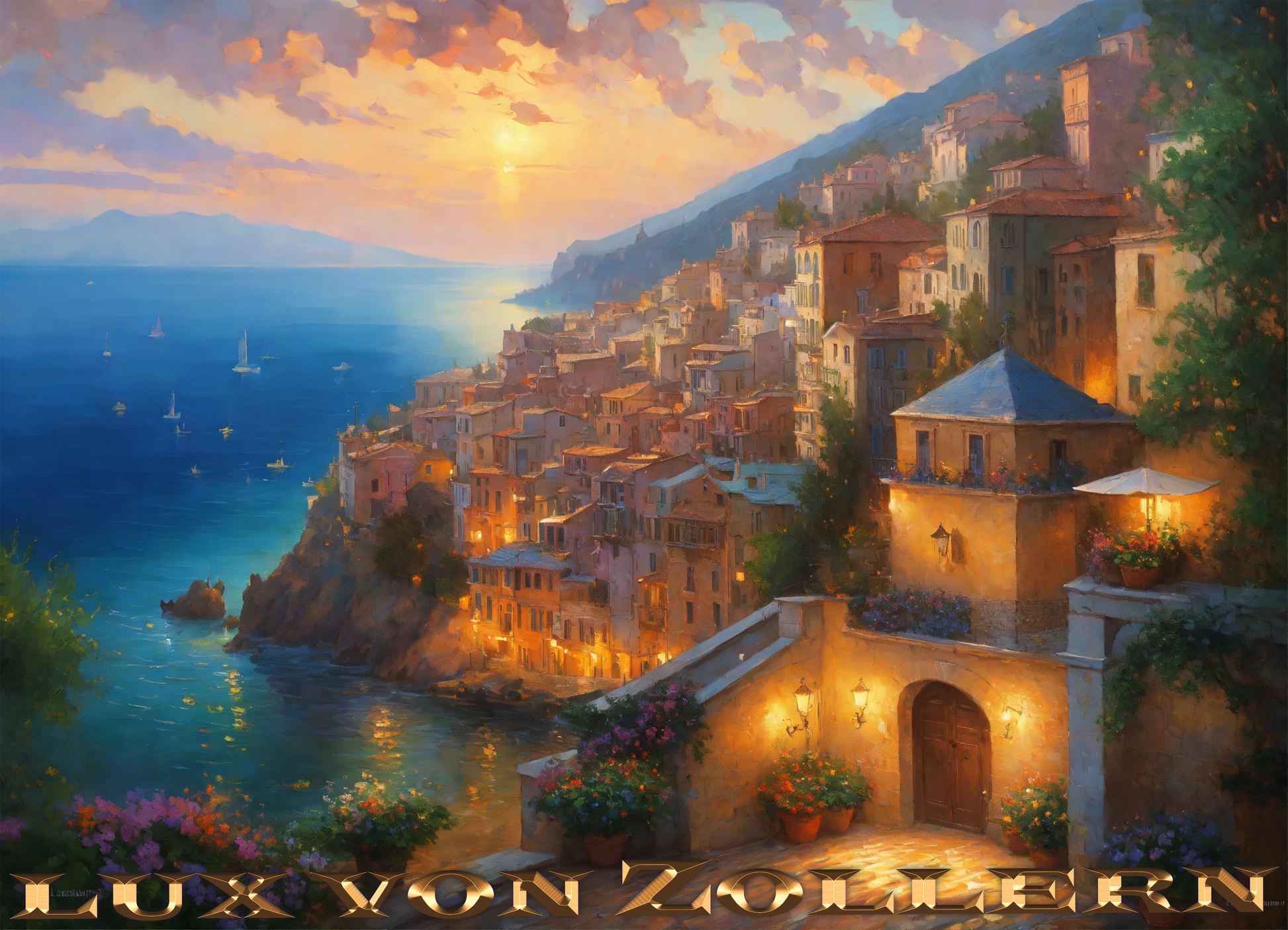 Ultimately, the interplay of light and color in "Rich Rewards by Lux von Zollern" elevates the collection from a mere representation of a Mediterranean landscape to a visual metaphor for the human experience. The collection captures both the struggle and the joy of pursuing one’s dreams, as well as the ultimate fulfillment that comes with achieving them. The light represents the guidance and clarity that help us navigate the path, while the colors evoke the range of emotions and experiences that define the journey.