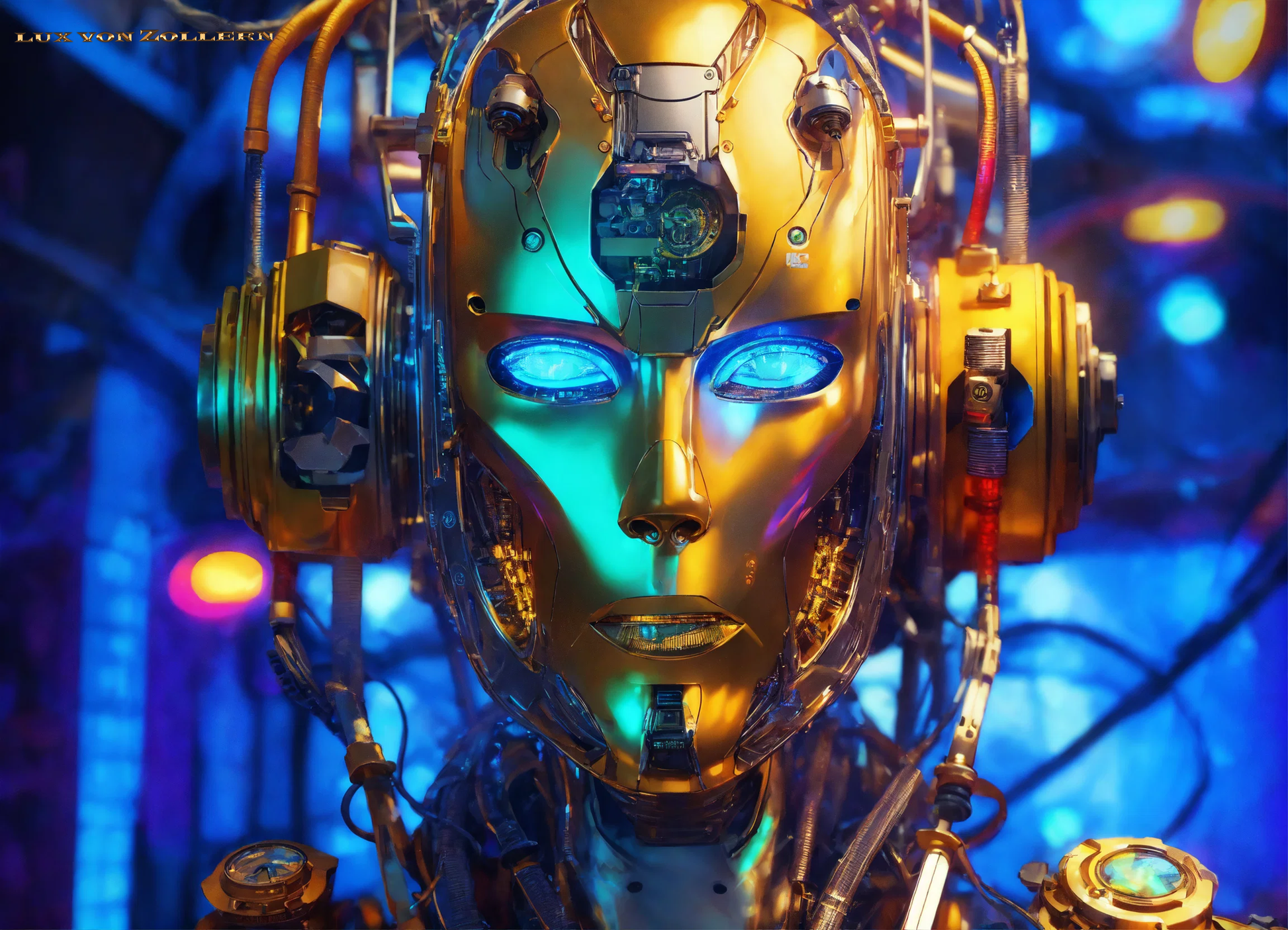 In Lux von Zollern's Shiny Objects collection, the glittering golden masks of AI-driven robot heads serve as potent metaphors for the perilous relationship between humanity and the technological progress we so eagerly pursue. The collection's visually stunning depictions of Artificial Intelligence are at once captivating and unsettling, a reflection of both our fascination with technology and the underlying dangers of allowing these systems to gain power over us. As the world rushes to adopt AI in countless aspects of life, from industry to healthcare, education, and even personal interactions, Shiny Objects serves as a warning—a reminder that our pursuit of progress must be tempered with caution, reflection, and a deep awareness of the potential consequences.